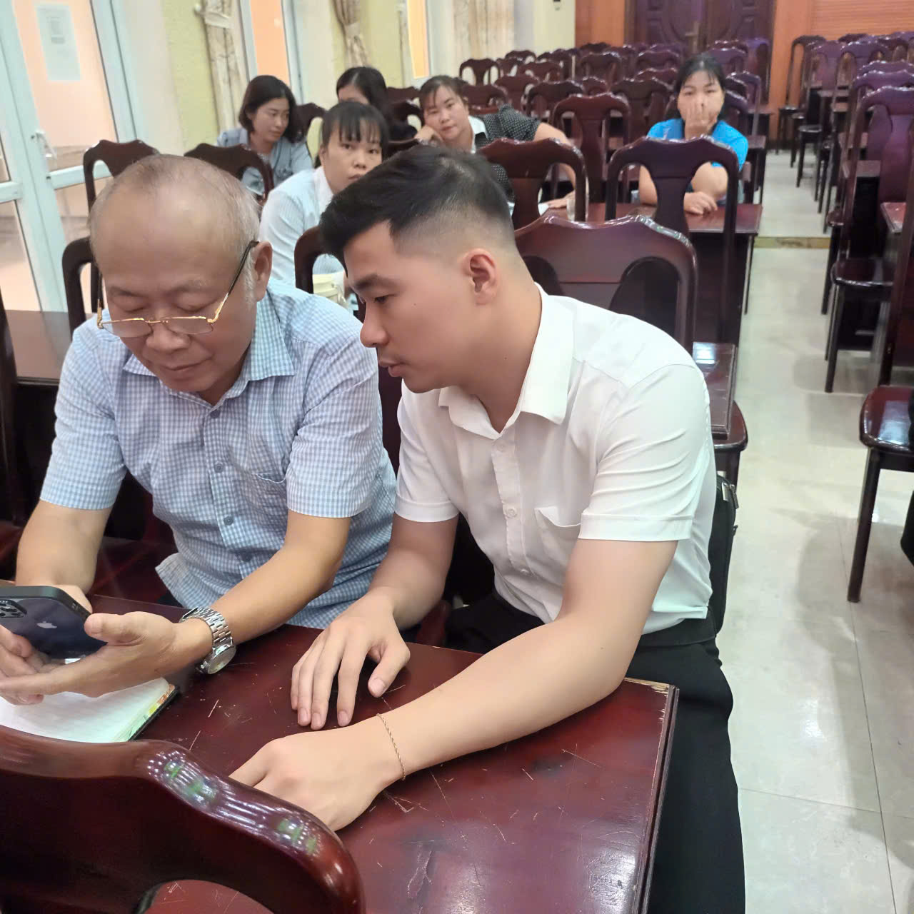 Công chức, viên chức các xã được giảng viên trực tiếp hướng dẫn, hỗ trợ thực hành nâng cao hiệu quả tiếp thu kiến thức