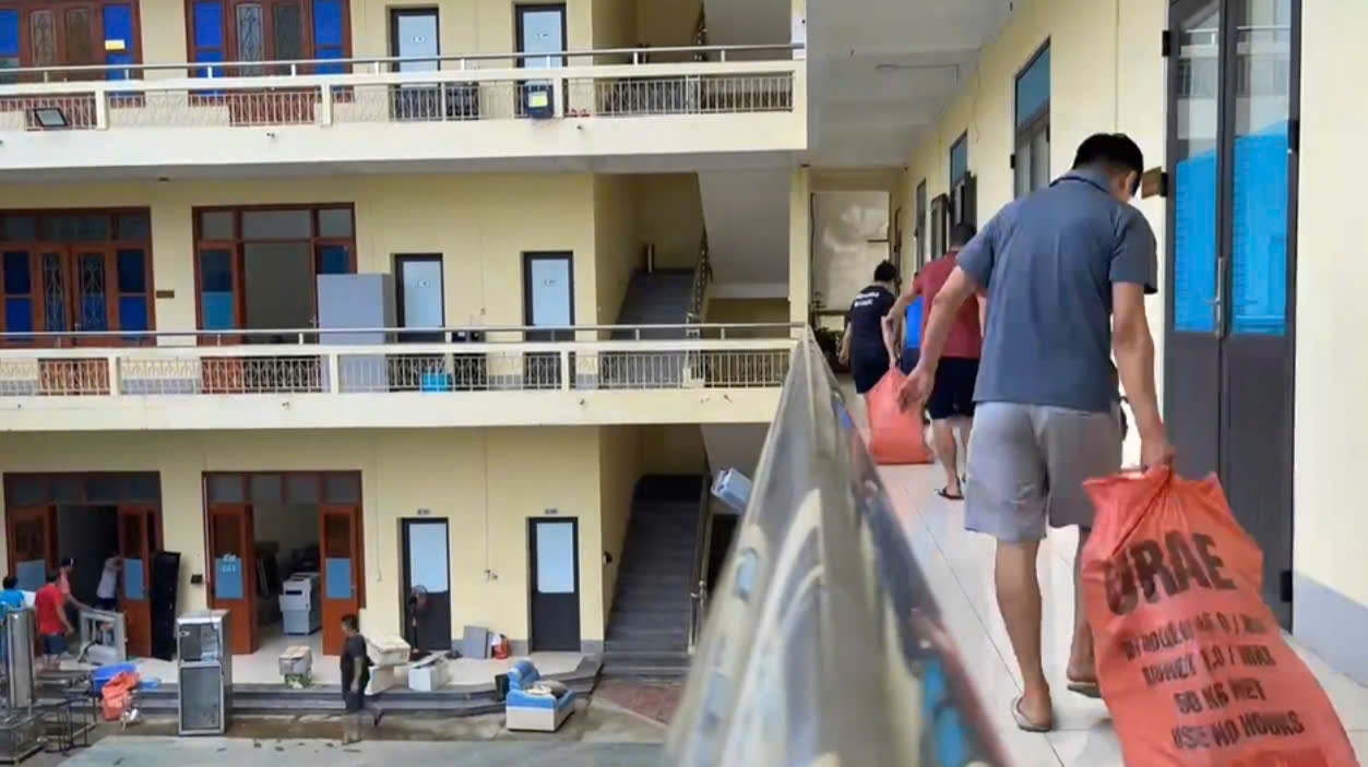 Khẩn trương dọn vệ sinh tại trụ sở Trung tâm Khoa học, Công nghệ và Đổi mới sáng tạo, cơ sở 2